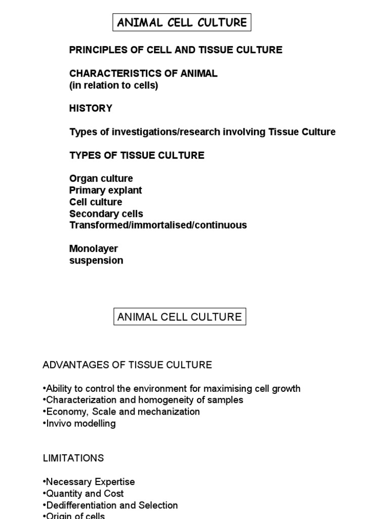 History Of Animal Cell Culture Cell Final Pptx Powerpoint from reader015.fdocuments.in As animal models and in vivo studies are costy. Even if the basic mammalian/animal cell culture techniques are similar to those that are applied to bacteria, fungi, and yeast, there are however some characteristic. Likewise, animal cell culture is a technique in which the cells are removed and are allowed to grow in a favorable artificial environment. The cells can be obtained from blood as well as isolated from the tissue digestion. Primary cell cultures come from the outgrowth of migrating cells from a piece of tissue or from tissue that is disaggregated by enzymatic, chemical, or mechanical methods. Animal models give a more accurate. The cell culture now days are mainly a term use for the animal of the eukaryotic cell culture. Animal cell culture has a history of over 100 years when the first attempts to grow cells were made by ross harrison who was able to show the development of nerve fibres from frog embryo tissue cultured in a blood clot.